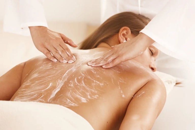 A gentle massage using rich cream to relax muscles, hydrate skin, and relieve stress effectively.